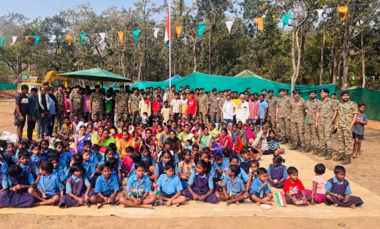 बीजापुर। माओवादी हिंसा से दशकों तक प्रभावित रहे जिला बीजापुर के अंदरूनी इलाकों में गणतंत्र दिवस-2026 ऐतिहासिक बन गया। माओवादियों के कोर एरिया कर्रेगुट्टा हिल्स (5000 फीट ऊंचाई) में स्थापित नवीन सुरक्षा कैंप सहित जिले के कई सुदूर गांवों में पहली बार शान से तिरंगा फहराया गया। 77वें गणतंत्र दिवस के अवसर पर सुरक्षा बलों, जनप्रतिनिधियों, ग्रामीणों एवं स्कूली बच्चों ने मिलकर ध्वजारोहण कर लोकतंत्र के उत्सव को मनाया।